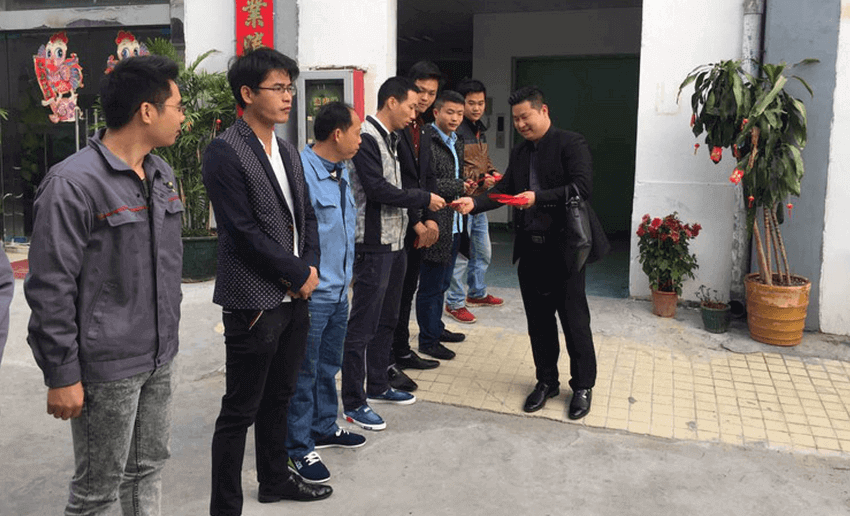 随后员工排成长队,公司领导亲手给大家派发新年利是,并送上祝福,现场气氛热烈,大家脸上洋溢着欢快的笑容。