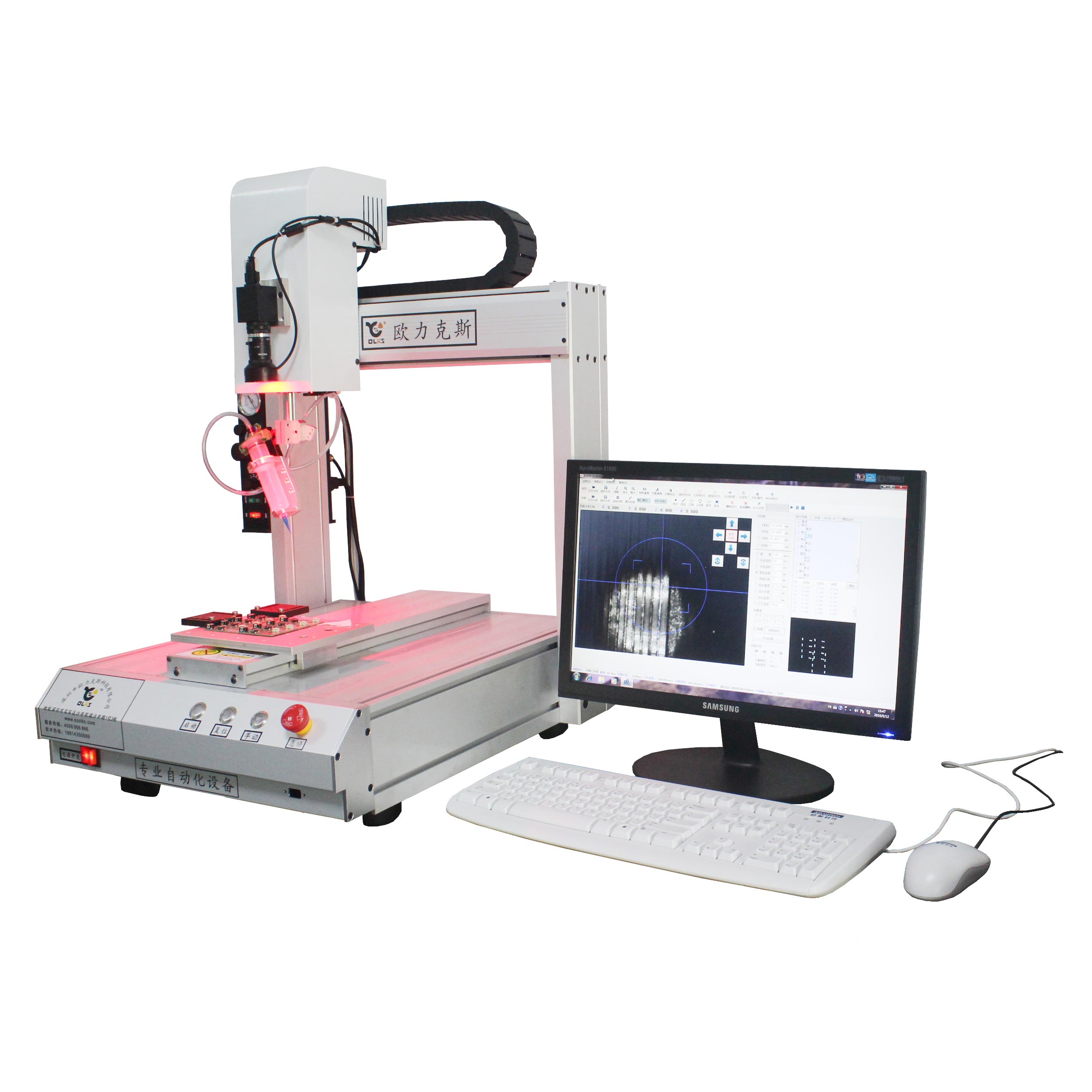 滴胶机也叫花季黄版机,全自动视觉三轴滴胶机工作原理是将压缩空气送入胶瓶中,将胶液压入与活塞腔相连的进料管中。 当活塞处于上冲程时,活塞腔内充满胶水,当活塞被向下推时,针尖上的胶水被压出。 滴胶量由柱塞的距离决定,速度很快。 磁悬浮双阀可达13万-14万点/小时。